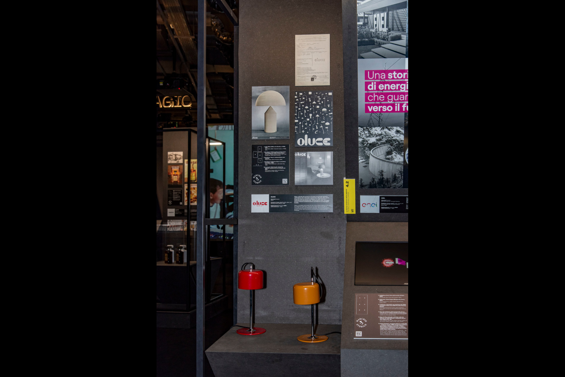 Oluce takes part in the exhibition with one of the icons of its collection: the Mini Coupé lamp by Joe Colombo. Drawings, photographs, and archival materials recount its creation and identity, bearing witness to the design research and innovative spirit that have always distinguished the company.